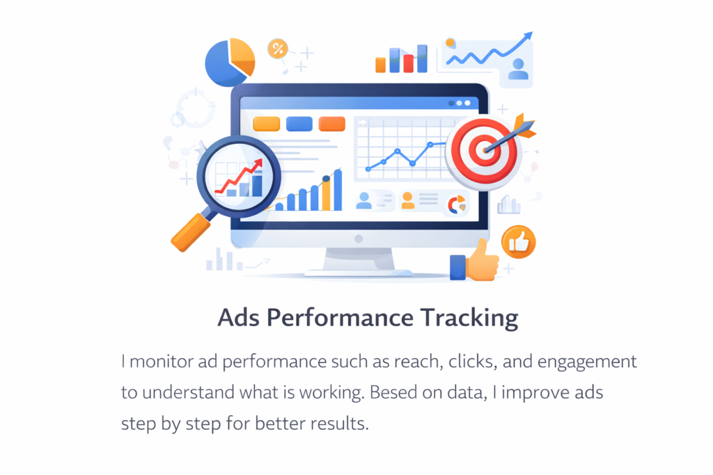 Home Helping Small Businesses Grow with Digital Marketing I am a beginner digital marketer focused on Facebook & Instagram Ads,Youtube and Google Ads practical growth strategies for local and online businesses. About me Are You Facing These Problems in Digital Marketing? Low Reach on Facebook & InstagramYour posts are not reaching the right audience, even after regular posting Ads Run but No ResultsYou spend money on ads, but don’t get leads, messages, or sales. No Clear Marketing Strategyou don’t know which campaign to run: Awareness, Leads, or Sales. Don’t worry — I help small businesses start digital marketing the right way. What I Can Do for You (Services)
